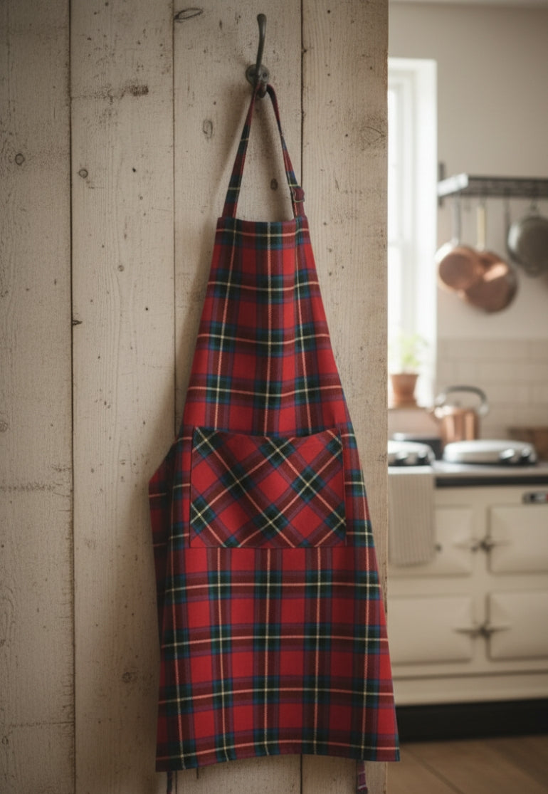 Tartan Apron with Large Front Pocket Introducing the Tartan Apron with Large Front Pocket, a blend of tradition and practicality...
